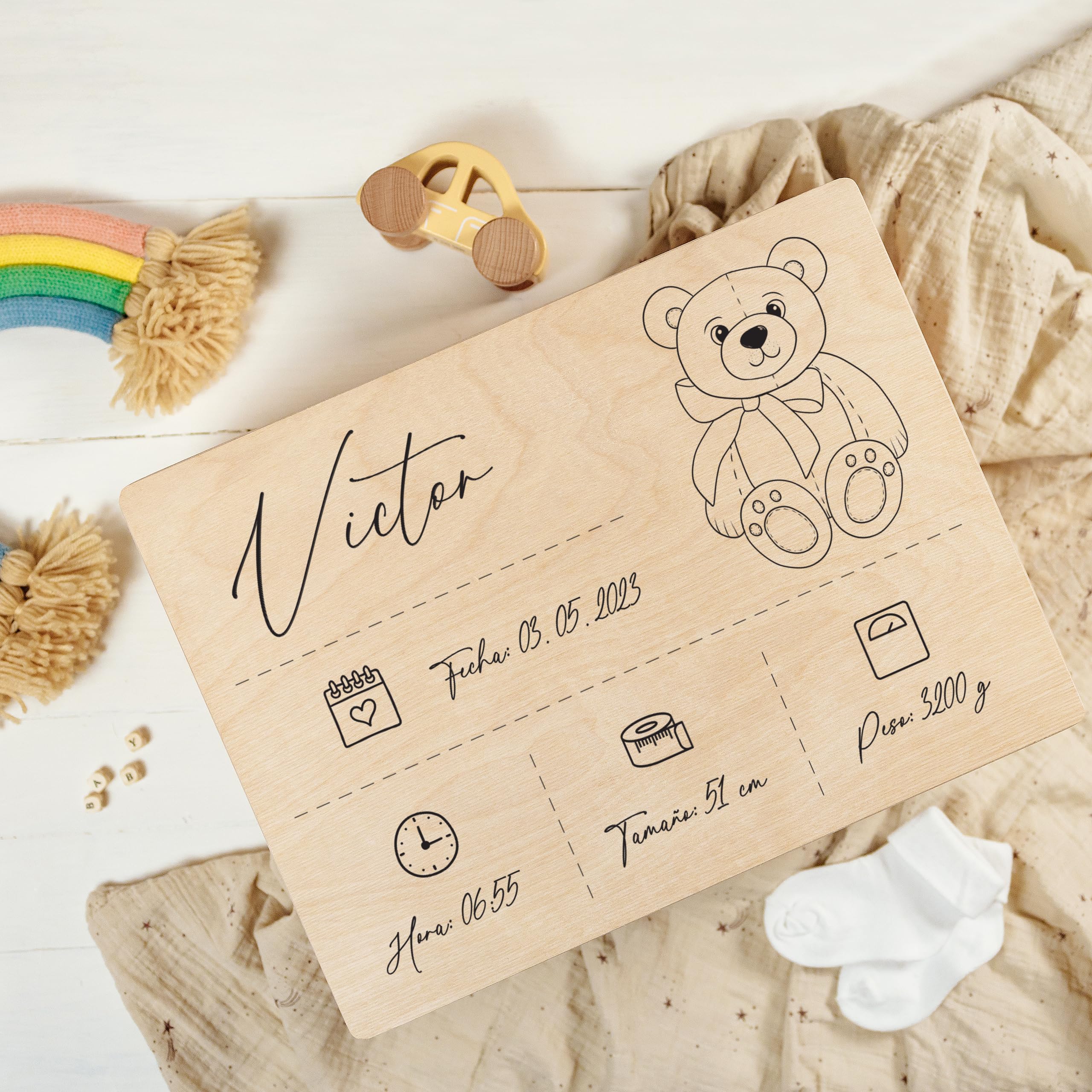 Completa esto lo más rápido posible después de la compra para no extender tu tiempo de producción. Regalos originales recién nacidos | Cajas personalizadas para recién nacidos | RO Personalízalo con el nombre y la fecha de nacimiento de tu pequeño, creando un regalo único y sentimental que será apreciado durante muchos años. Ya sea que estés dando la bienvenida a tu bebé o buscando un maravilloso regalo para los nuevos padres, esta caja de recuerdos es una hermosa manera de capturar la magia de esos primeros años y crear un legado de amor duradero. Personalizado solo para ti: dentro de los 30 minutos de realizar tu pedido recibirás un PDF por correo electrónico con un enlace a seguir que te permitirá personalizar tu caja. Caja De Recuerdos Personalizada Para Bebé (grande, Arte De Bosque Azul Si AliExprs tá obligado por ley a recaudar el IVA, verás el precio con IVA incluido en el momento de pagar. Para más información sobre tos cost, ponte en contacto con las autoridad fiscal y aduaneras de tu país. Vendido por JM baby Store. Logística por AliExprs Nada toca el corazón como una carta de amor pasada de moda. Caja de almacenamiento de madera personalizada para bebé, 11.8 x 7.87 x 5.51 pulgadas ( -0.5), animales, con tapa con bisagras, asas grabadas, caja de regalo... Elige entre cinco tamaños (16 cm, 20 cm, 26 cm, 30 cm y 36 cm) para encontrar el ajuste perfecto para tu creciente colección de recuerdos. Recuerdos preciosos, bellamente guardados: un regalo conmovedor para dar la bienvenida a un nuevo bebé, esta caja de recuerdos es la manera perfecta de almacenar esos pequeños tesoros que marcan el comienzo de una vida de recuerdos. Tamaño versátil: con dimensiones externas de 30 cm de ancho x 22,9 cm de profundidad x 18 cm de alto y dimensiones internas de 28,4 cm de ancho x 21,3 cm de profundidad x 13,9 cm de alto, la caja es lo suficientemente grande como para contener recuerdos preciados mientras sigue siendo compacta y fácil de mostrar.